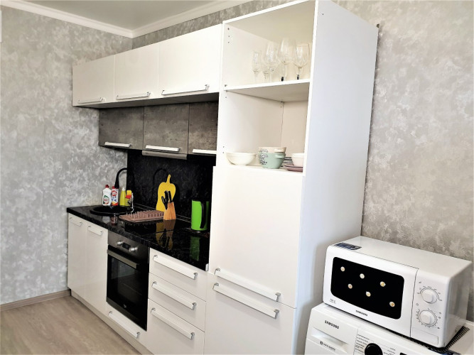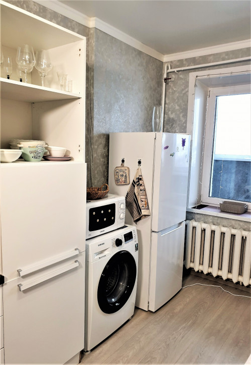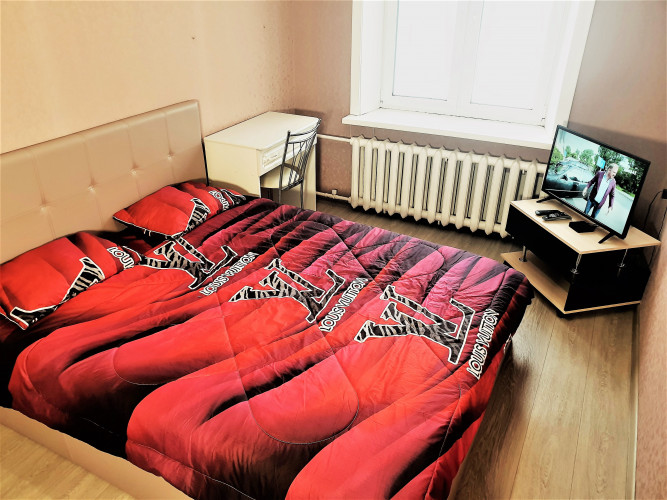 Предлагается аренда уютной и чистой двухкомнатной квартиры с четырьмя отдельными спальными местами. В первой комнате имеется двуспальная кровать и большой раскладной диван, а во второй комнате — ещё одна двуспальная кровать и диван. В квартире предоставляется все необходимое для комфортного проживания, включая постельное белье, набор полотенец, кухонную посуду, доступ к Wi-Fi, два телевизора, IP-телевидение и принадлежности для ванны.