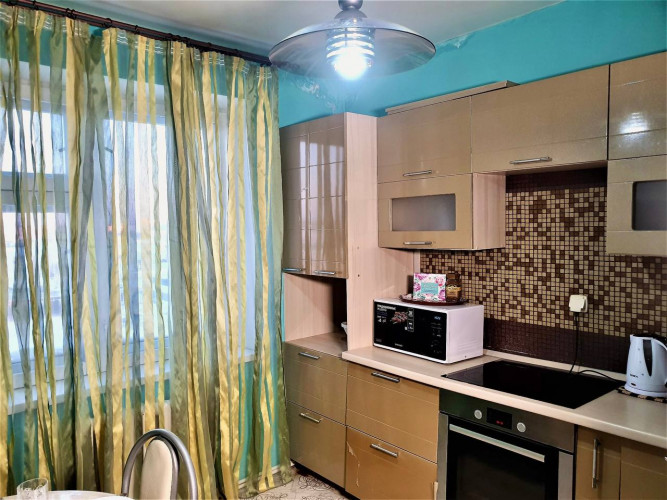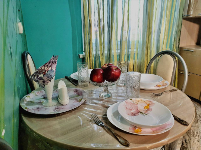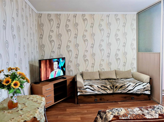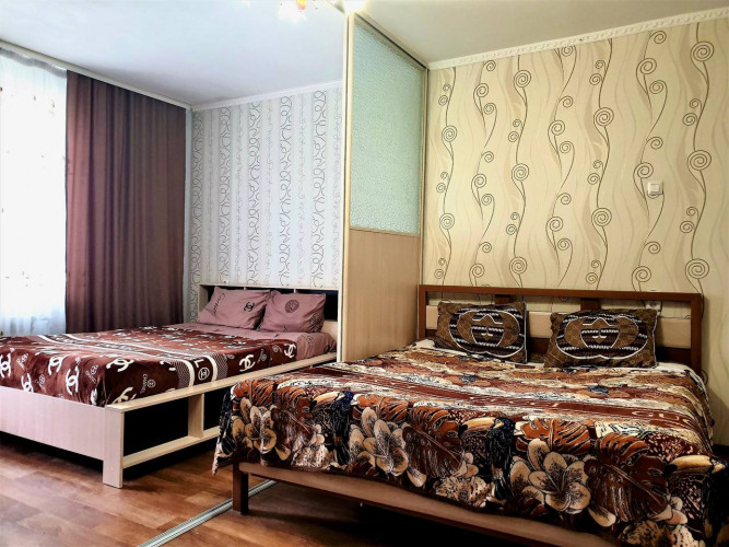 Предлагается аренда уютной и чистой однокомнатной квартиры с тремя отдельными спальными местами, включая две двуспальные кровати и раскладной диван для двоих. В квартире имеется всё необходимое для комфортного проживания: постельное белье, набор полотенец, кухонная посуда, доступ к Wi-Fi и IP-TV, а также принадлежности для ванны.