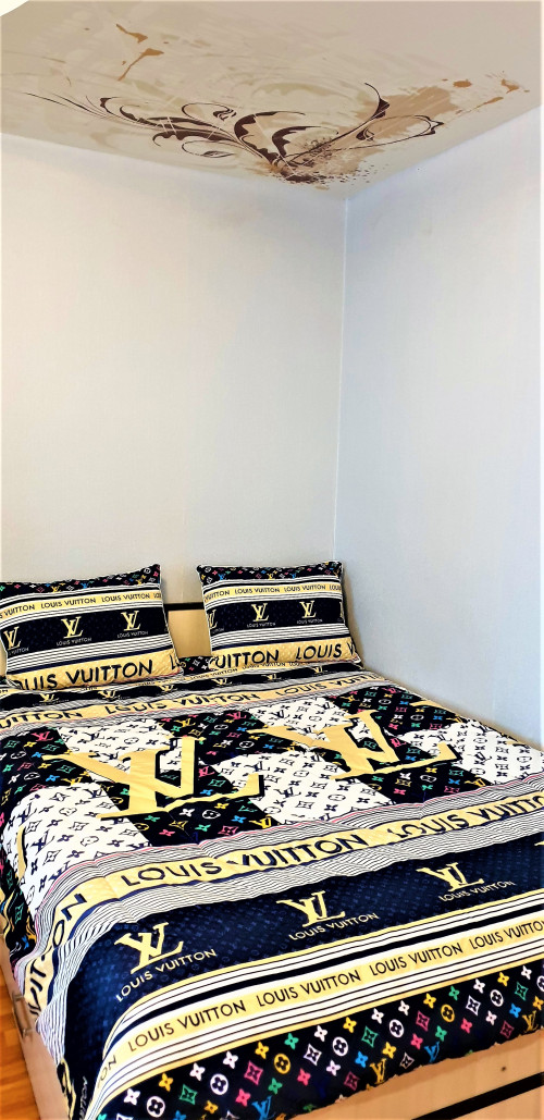 Предлагается аренда чистой и уютной квартиры с тремя отдельными спальными местами: двуспальной кроватью, раскладывающимся двуспальным диваном и раскладывающимся диваном на кухне. В квартире есть все необходимое для комфортного проживания, включая постельное белье, набор полотенец, кухонную посуду, доступ к Wi-Fi и кабельному телевидению, а также принадлежности для ванны.