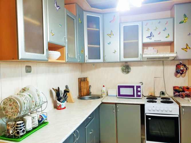 Предлагается уютная и чистая двухкомнатная квартира с четырьмя отдельными спальными местами. В первой комнате расположены двуспальная кровать и раскладной диван, во второй комнате - раскладной диван и односпальная кровать. В квартире имеется всё необходимое для комфортного проживания, включая постельное белье, полотенца, кухонную посуду, Wi-Fi, IPTV и предметы личной гигиени. Рядом находится спортивный комплекс и бассейн "АРКТИКА", а также продуктовые магазины, такие как "Магнит", "Монетка" и "Красное&Белое". Заселение возможно круглосуточно, но в ночное время требуется предварительная бронь.