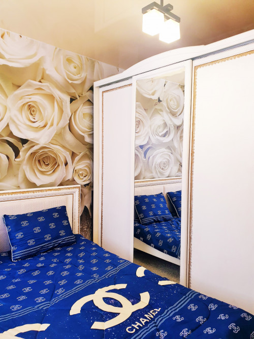 Сдается уютная и чистая квартира с четырьмя отдельными спальными местами. В первой комнате есть двуспальная кровать и два раскладных двуспальных дивана, а также телевизор. Во второй комнате также имеется двуспальная кровать и телевизор. В квартире предоставляются все удобства для комфортного проживания, включая постельное белье, полотенца, кухонную посуду, беспроводной интернет, два телевизора, IP-TV и необходимые принадлежности для ванны.