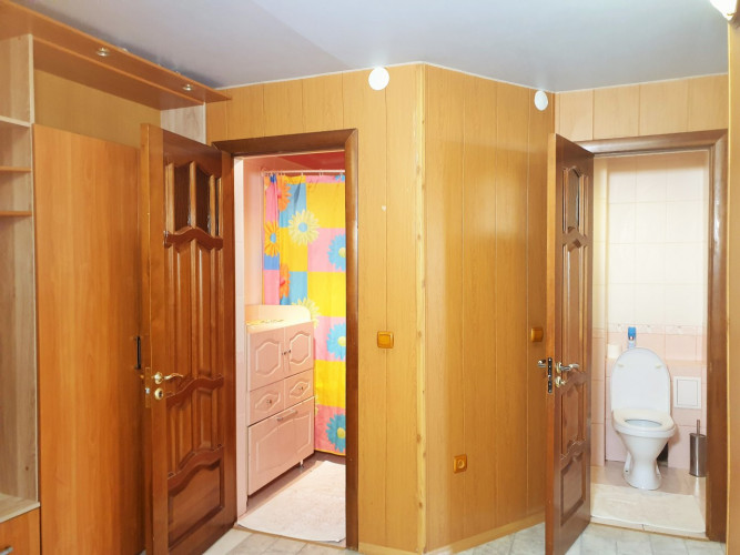 Расположение квартиры удобно, так как рядом находится железнодорожный вокзал и продуктовые магазины. Заселение возможно круглосуточно, но в ночное время требуется предварительная бронь.